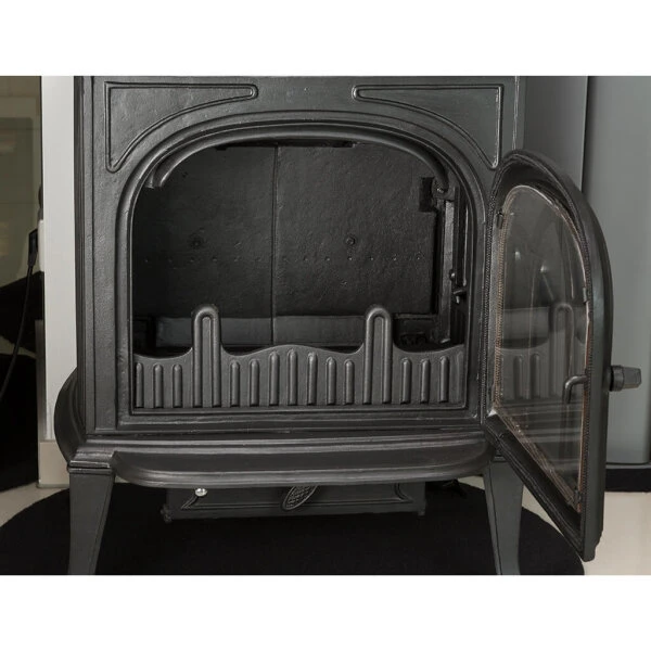 Der Guss-Kaminofen Globe Fire Orion ist mit einem planen Rostboden sowie einem Dreh-Fächerrost konzipiert. Dies macht die Verbrennung sowohl von herkömmlichen Brennholz, als auch von Holz- und Braunkohlebriketts möglich. Dabei wird bei der Verbrennung von Holz viel Luft benötigt, weshalb die Glut immer auseinanderfallen sollte.