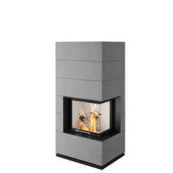 Majestätisch präsentiert sich der Genf III Rainbow mit einem unteren Sims aus Rainbow-Naturstein und einem oberen Sims aus massivem Eichenholz. Zwei Säulen scheinen die Simse auseinander zu halten, damit der Blick ungestört durch die große Sichtscheibe das Feuer bewundern kann. Genauso majestätisch wie das Aussehen ist auch sein Gewicht: Mit 479kg ist der Genf III Rainbow ein echtes Schwergewicht und trägt das Potenzial eines Unikats in sich, denn Sie können die Formelemente mit Farbe, Roll- oder Reibeputz ganz nach Ihrem Belieben gestalten.