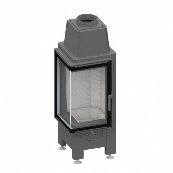 Der Kamineinsatz Schmid Ekko 34 ist mit seiner kompakten quadratischen Grundfläche ein kleines Platzwunder. Seine L-förmige Sichtscheibe hat eine Seitentiefe sowie Frontbreite von nur zierlichen 34 cm. Somit ist der Schmid Ekko 34 der ideale Kamineinsatz für individuell gestaltete Kamine in kleinen Räumen, Ateliers, Gartenhäusern oder Ferienwohnungen. Als Eckkamin ist er durch seine Form und die L-förmige Scheibe perfekt.