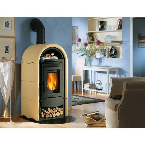 Ein guter Kaminofen, wie dieser von La Nordica, zeichnet sich aber auch durch eine ebenso interessante wie überzeugende Optik aus. Der La Nordica Stefany Forno BII besticht mit den von eleganten Linien durchzogenen Verkleidungselementen aus Majolika oder Naturstein ebenso wie mit seiner schlicht gehaltenen Front, die die Flammen betont.