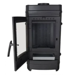 Das mittig im Kaminkorpus platzierte Sichtfenster ist mit einer Scheibe aus Keramikglas ausgestattet, die bis 750°C beständig ist. Somit werden Sie das Innere Ihres Kamins dauerhaft gut im Blick haben können. Unter der Brennkammer liegt ein praktischer ausziehbarer Aschebehälter hinter der Tür versteckt.